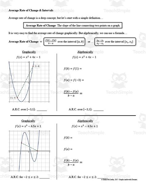 average rate of change of a function over an interval worksheet