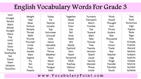 english difficult words for class 3rd