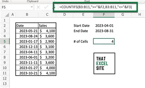 excel formula count cells within date range