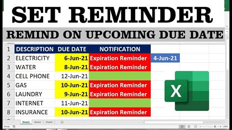 how do i set a due date reminder in excel
