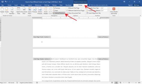 how to have a different footer on each page in ms word