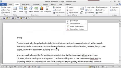 how to make page numbers consecutive in word