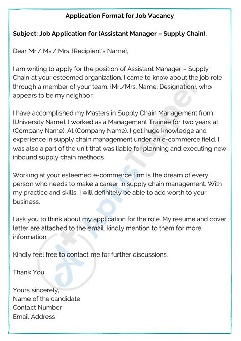 how to write application format in english