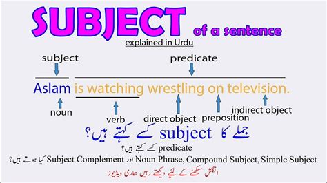 subject meaning in urdu with example
