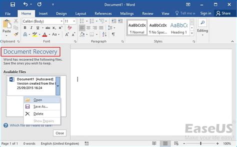where is the document recovery in microsoft word